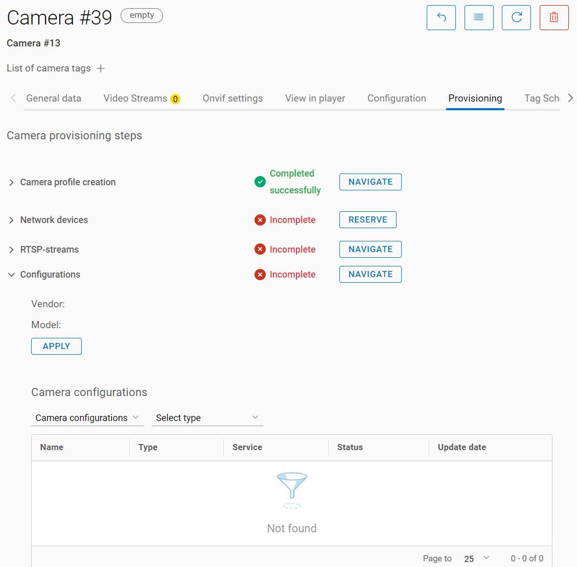 On the Provisioning tab, you can find details about the stages and events of camera provisioning.