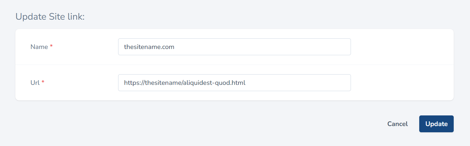 To edit the site name and URL, select the Edit icon. As a result, the Update Site link page will be open to proceed with editing.