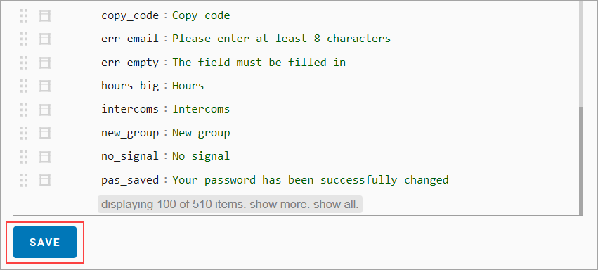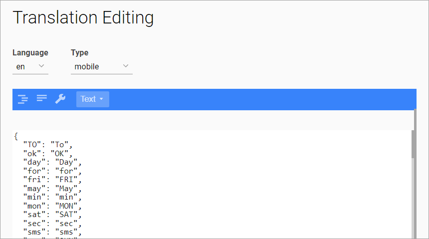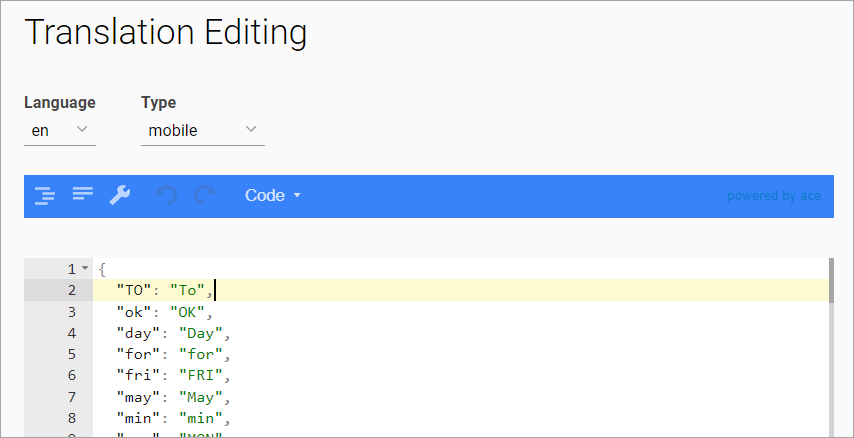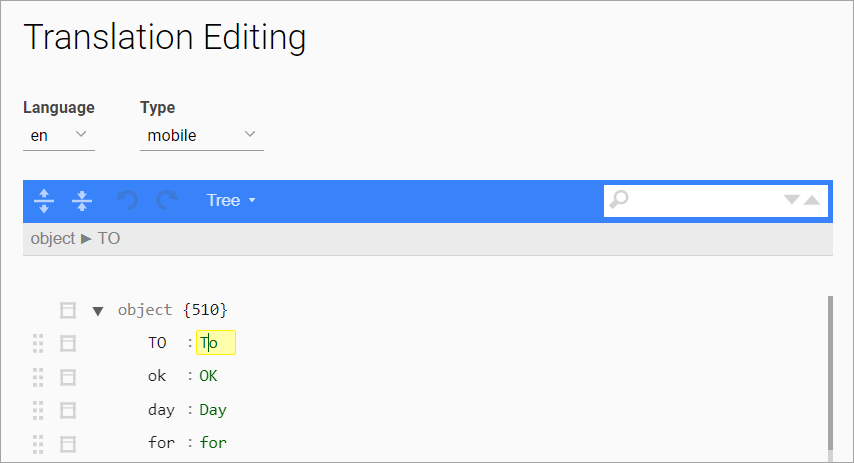 To edit a translation or an item, click on the item or translation and modify it by entering the desired value on the keyboard. The edited translation or item will be highlighted in yellow.