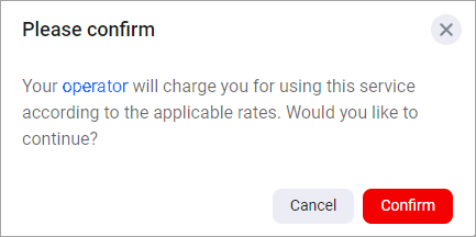 When a message regarding service payment appears on your screen, you can proceed by selecting Confirm if you agree with the terms. To review the terms and conditions, follow the link provided in the message.