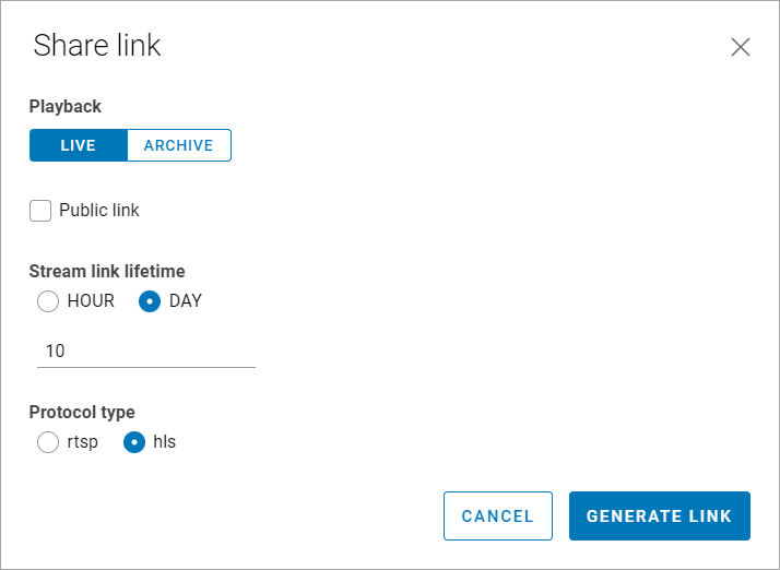 With this function, you can provide access to external unregistered users so they can view camera video. You can generate both permanent and temporary links.