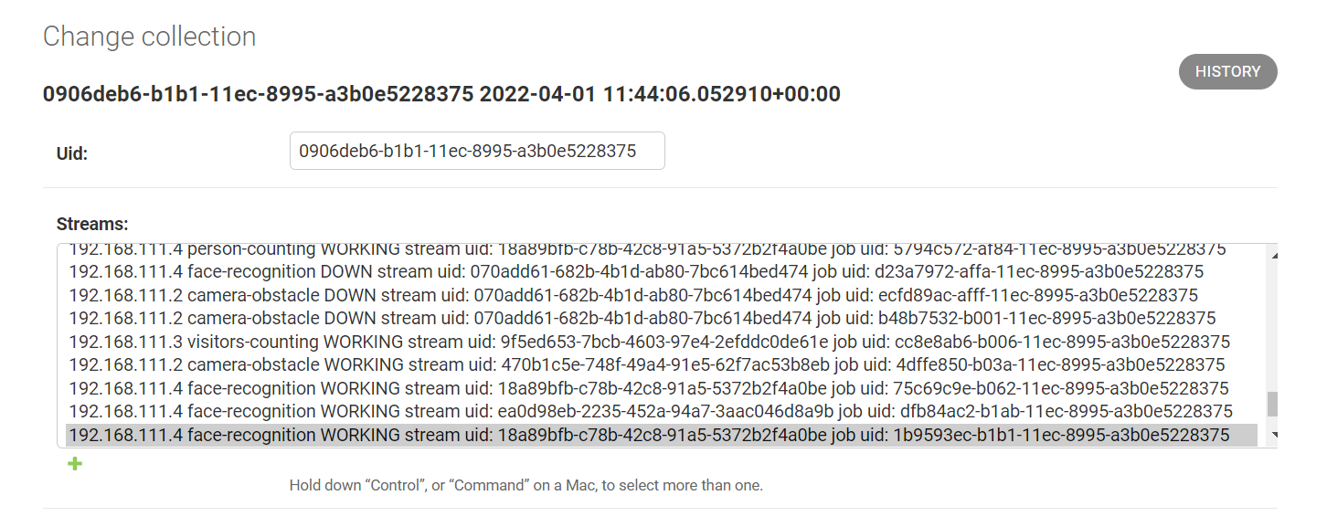 Streams, a list of streams that use the specific collection.