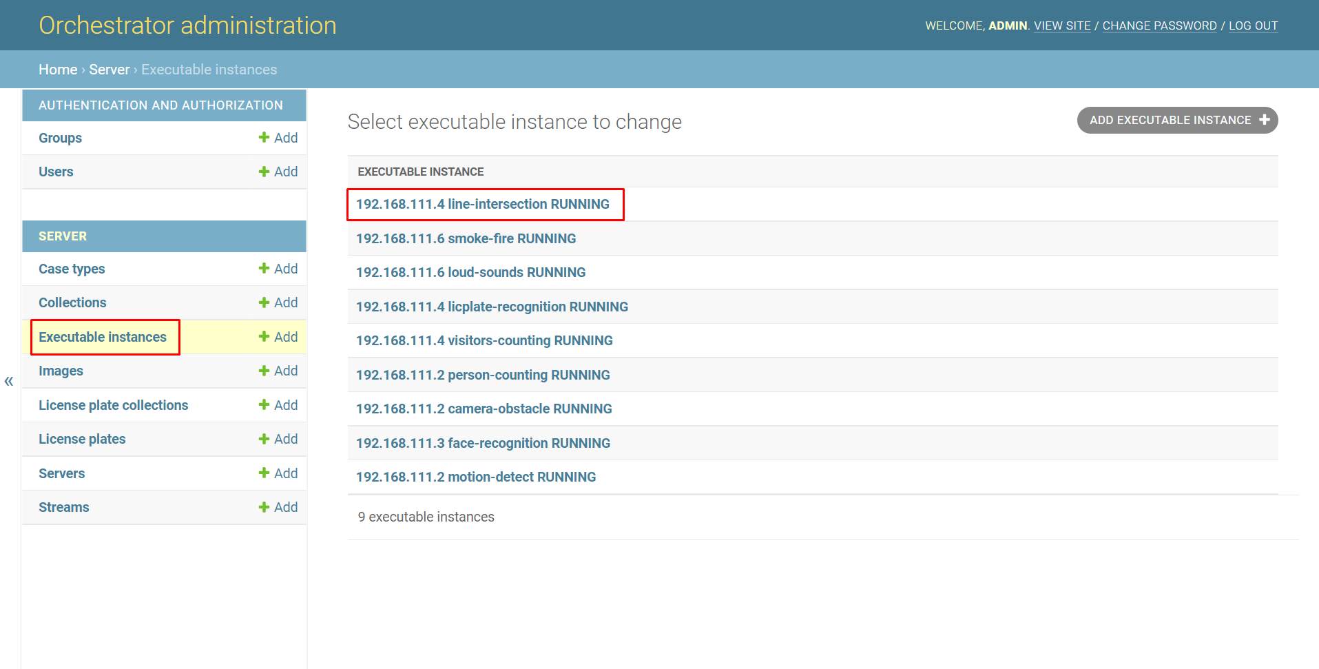 To view information about a specific executable file, open the Executable instances page, select the specific executable file and click on it.