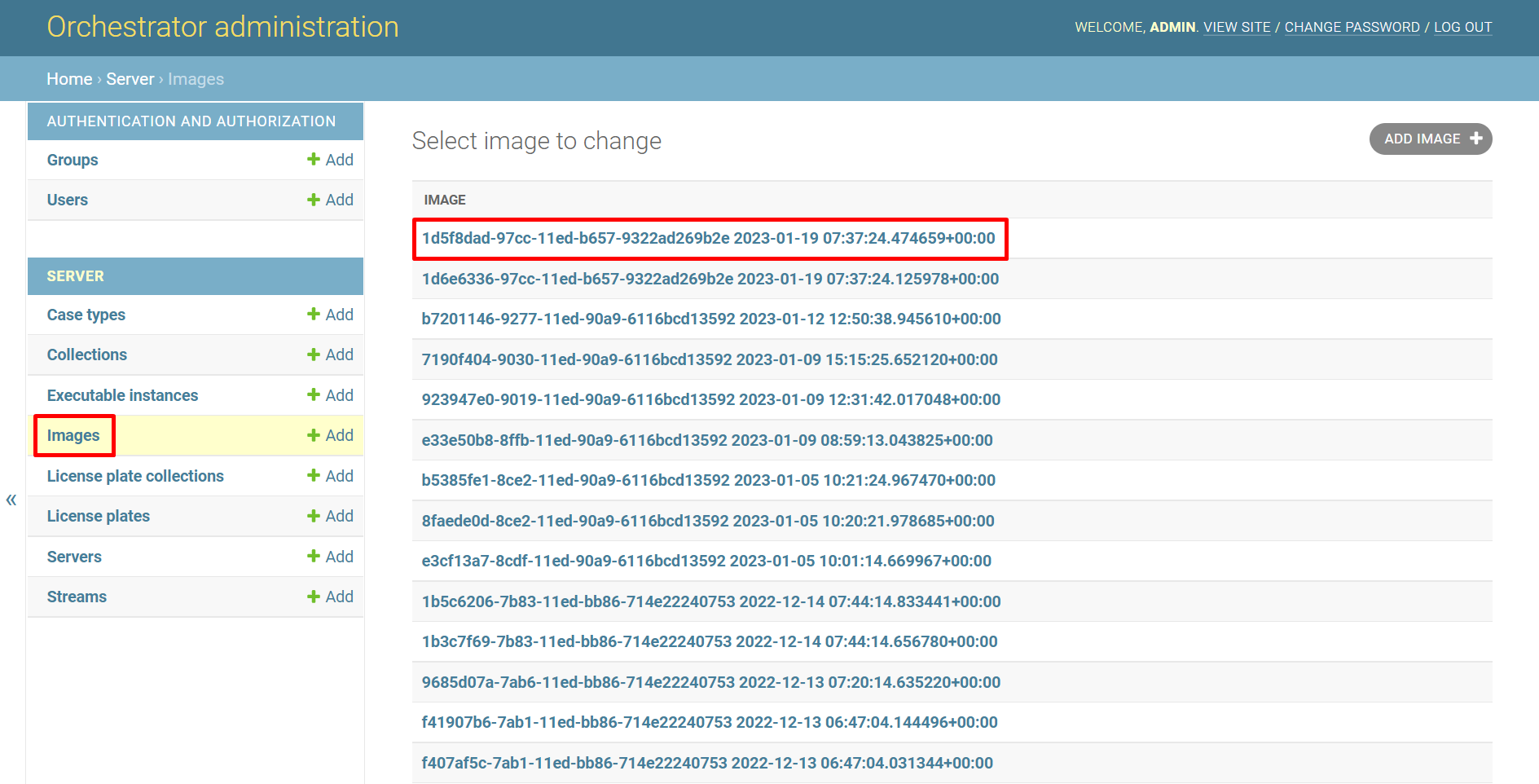 To view information about a specific image, open the Images page, select the image.