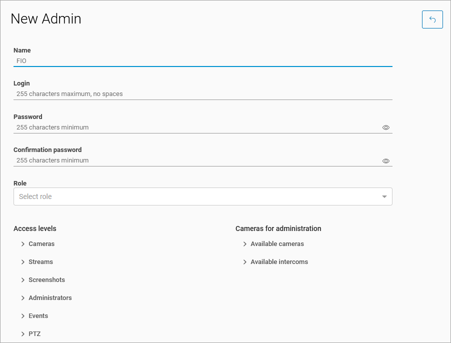 On the General information tab, you can edit a name, login, role, access level, and cameras for administration.