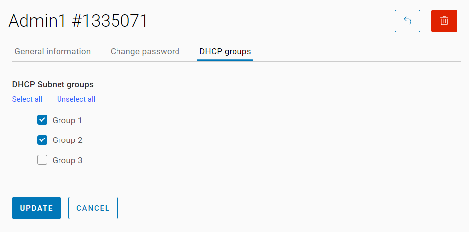 On DHCP Groups tab, you can manage DHCP pool groups for the administrator.