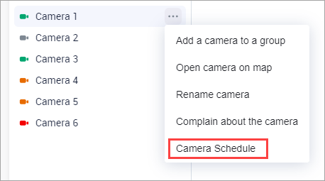 Select Camera Schedule. If the user is granted this permission, they can manage the camera working schedule from their app web interface.