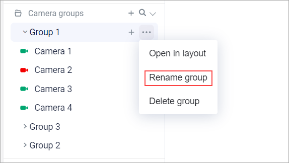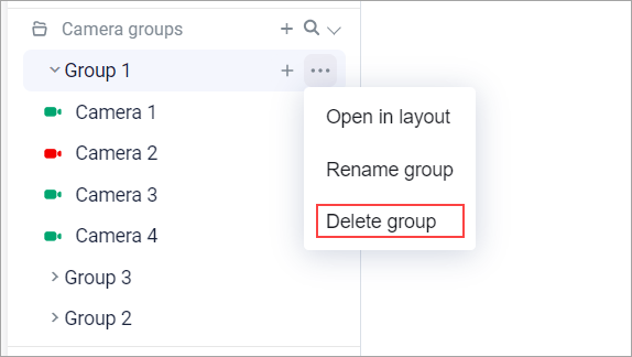 The Camera groups section is designed for organizing cameras into groups. Here, users can create and customize camera groups to suit their individual needs