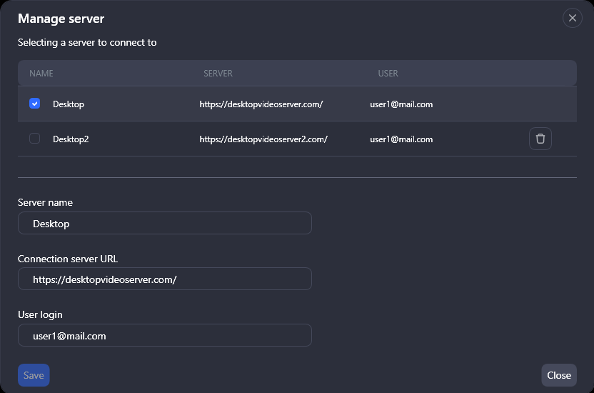 To delete a server, select the Delete icon for this server.