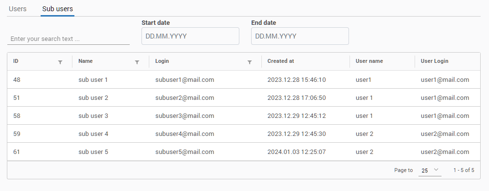 The Sub-users list