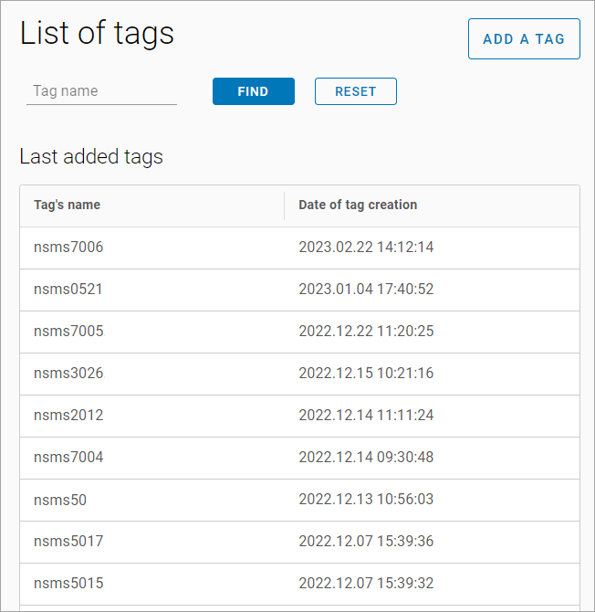 The Tags of cameras section features a list of tags. Tags help group cameras and navigate the camera hierarchy when applying configurations.
