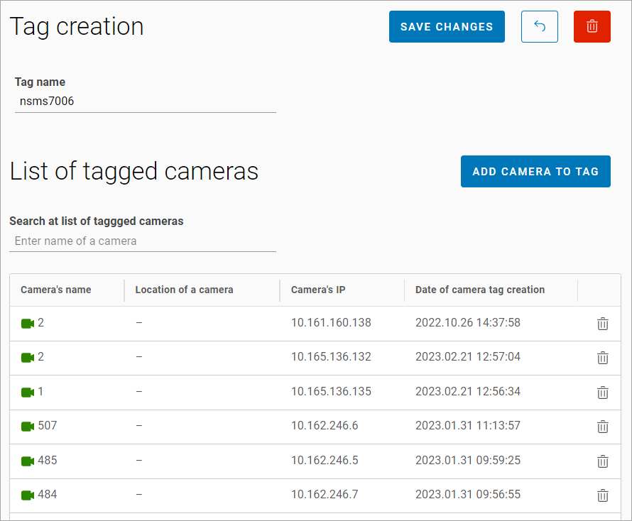 For quick navigation through the camera tree, use tags. Selecting a tag displays a list of cameras associated with that tag.