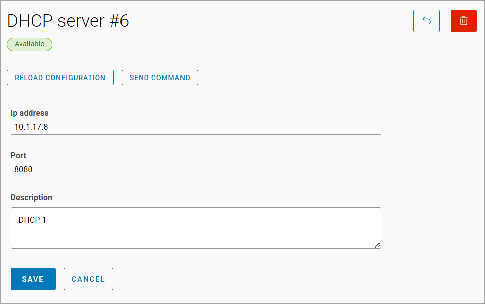 On the opened page, the following actions are available for a DHCP server: