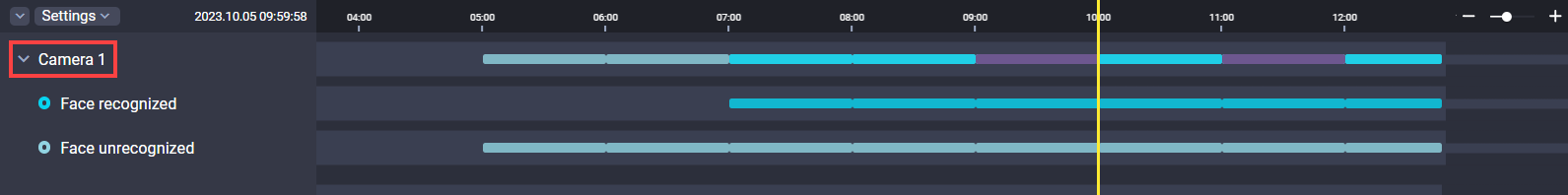 For a detailed view of individual event types, expand the camera's timeline.