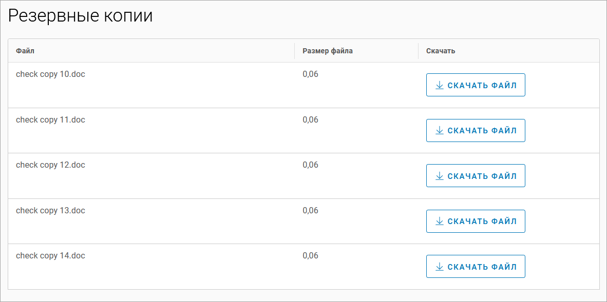 Страница «Резервные копии» предназначена для хранения дампов, необходимых для восстановления данных.