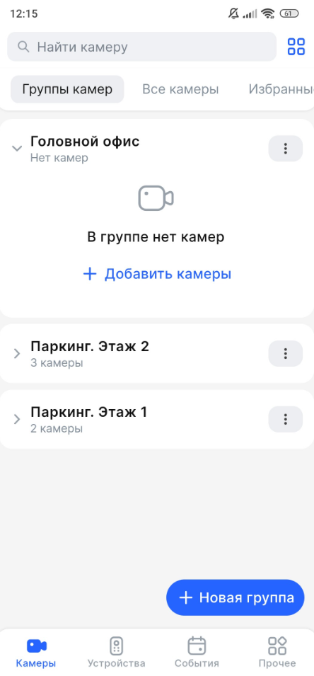 Нажмите на необходимую группу камер. Откроется детальная информация о группе.