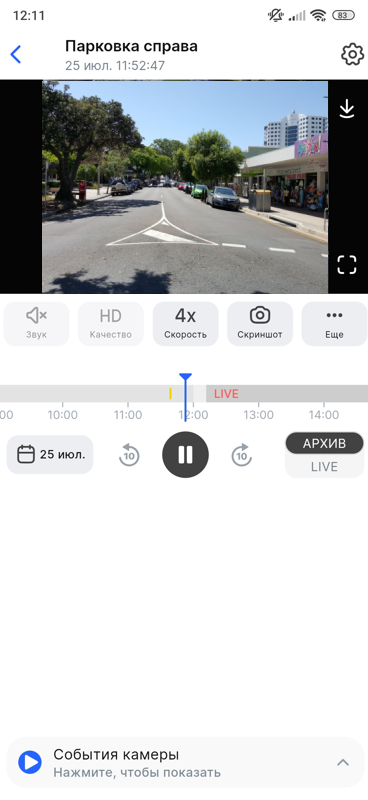 Просмотр записи камеры в режиме «Архив» (Android, iOS)