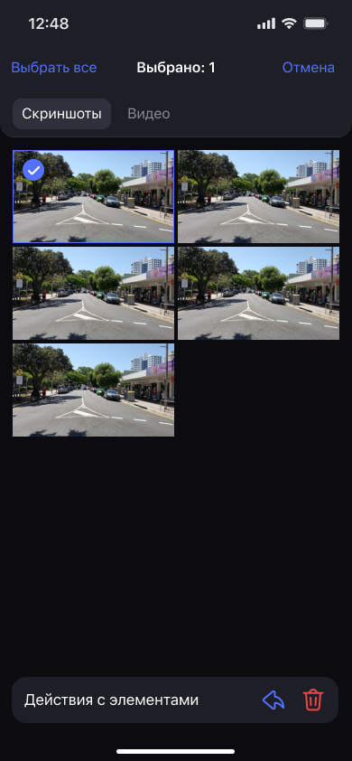 Нажмите необходимые скриншоты, чтобы их выбрать. Для выбора всех скриншотов нажмите «Выбрать все» в левом углу вкладки «Скриншоты».