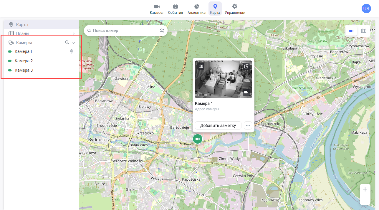 Камеры на карту могут наносить как администраторы видеоплатформы из своего интерфейса, так и сами пользователи.