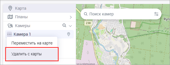 Пользователь имеет возможность удалять с карты исключительно те камеры, которые были добавлены им лично.