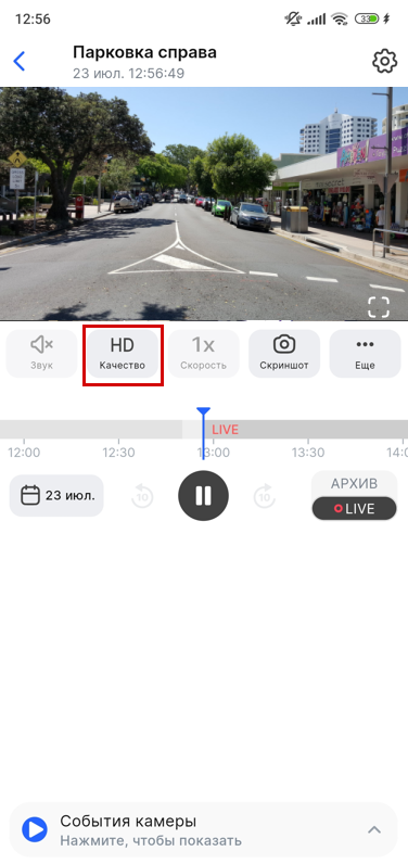 Если с камеры заведены два видеопотока с разным разрешением, то пользователям доступна функция выбора стандартного (SD) или высокого (HD) качества изображения при просмотре видео такой камеры в режиме «Live». Переключение качества изображения доступно при просмотре плеера, нажав кнопку «HD/SD качество».