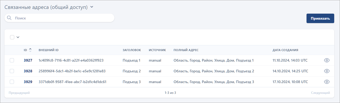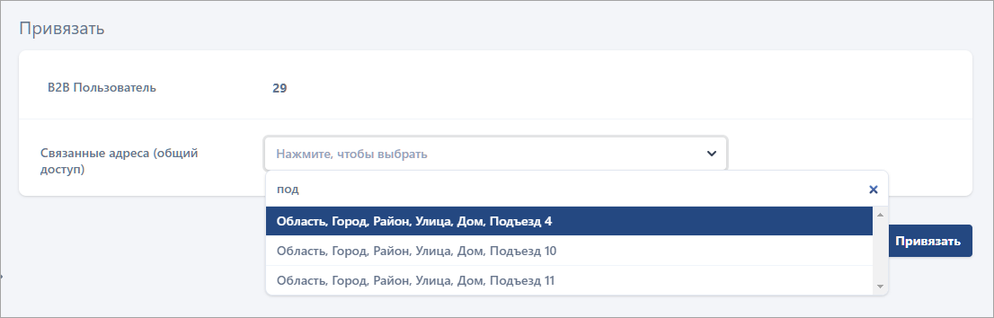 Чтобы привязать адрес к пользователю, нажмите «Привязать».
