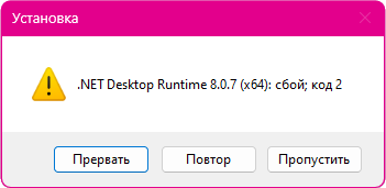 Нажмите «Пропустить», чтобы пропустить загрузку .Net и продолжить установку Desktop-клиента.