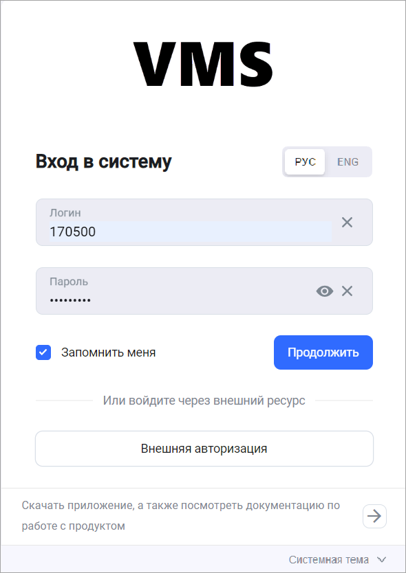 Откройте браузер и перейдите по адресу системы видеонаблюдения VMS.