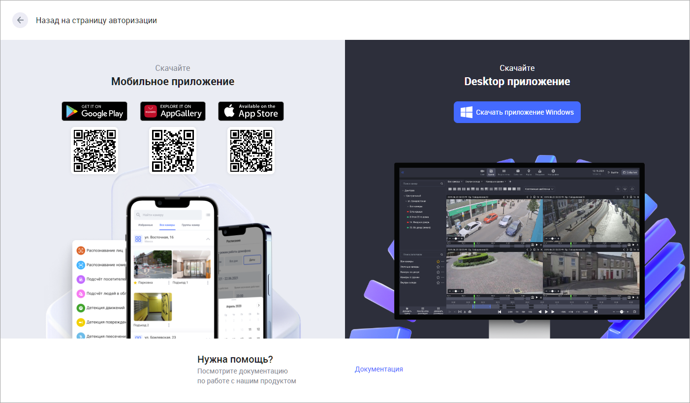 Нажмите на кнопку «→». В результате выполнится переход на страницу, на которой отображается кнопка для скачивания Desktop-клиента VMS.