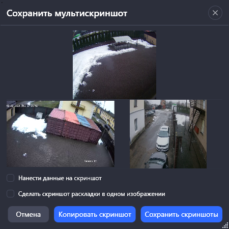 Функция «Скриншот раскладки» позволяет сделать снимок экрана, который включает изображение со всех камер текущей раскладки.