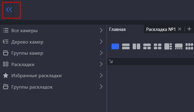 ![]() «Избранные раскладки» | «Избранные раскладки» содержит все избранные раскладки камер, созданные текущим пользователем. Подробно об избранных раскладках смотрите в данном разделе документации. |