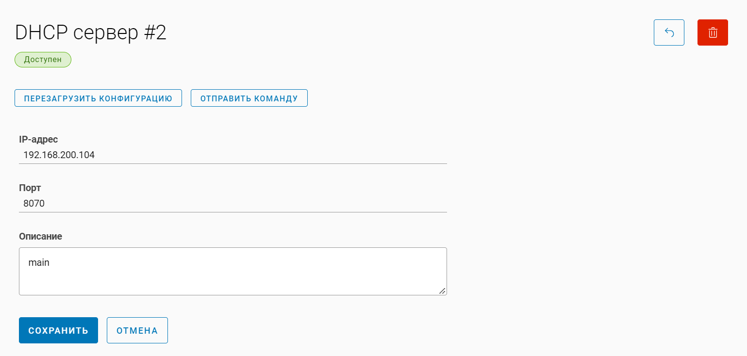 При просмотре DHCP-сервера доступны действия: