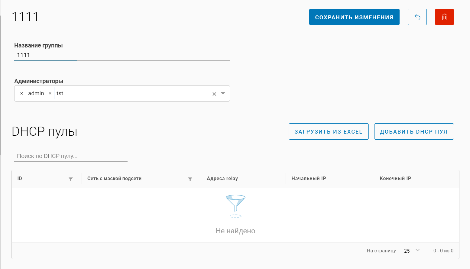 Для просмотра и редактирования группы DHCP-пулов выберите нужную группу в таблице и нажмите на нее.