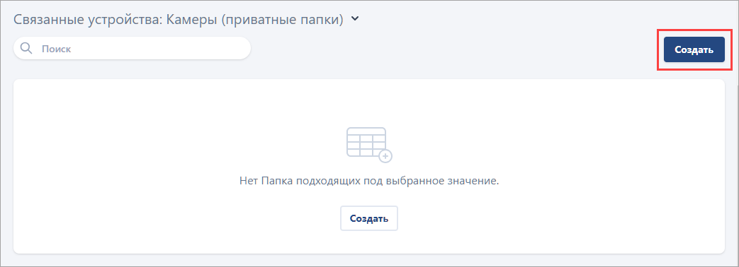 Для создания приватной папки перейдите в карточку последнего элемента адреса. В блоке «Связанные устройства: Камеры (приватные папки)» нажмите кнопку «Создать».