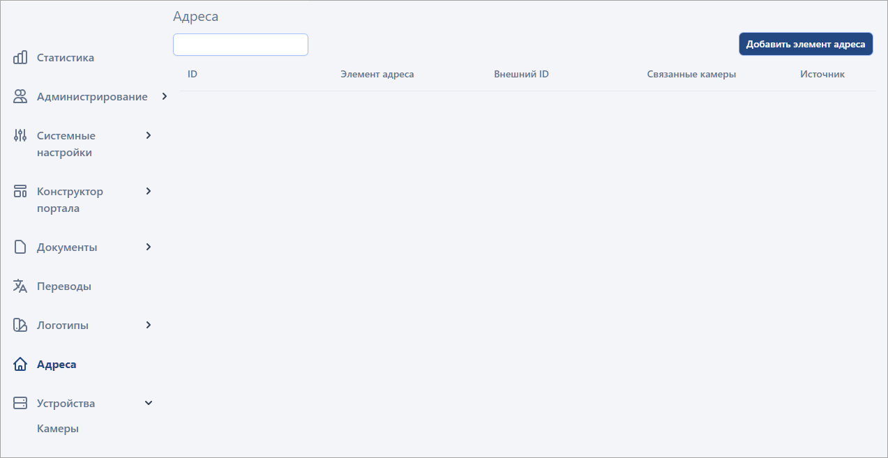 Создание адреса возможно только после формирования структуры адреса в разделе «Конструктор портала» → «Конструктор адресов». Под структурой адреса понимается иерархический набор полей с заданным уровнем вложенности.