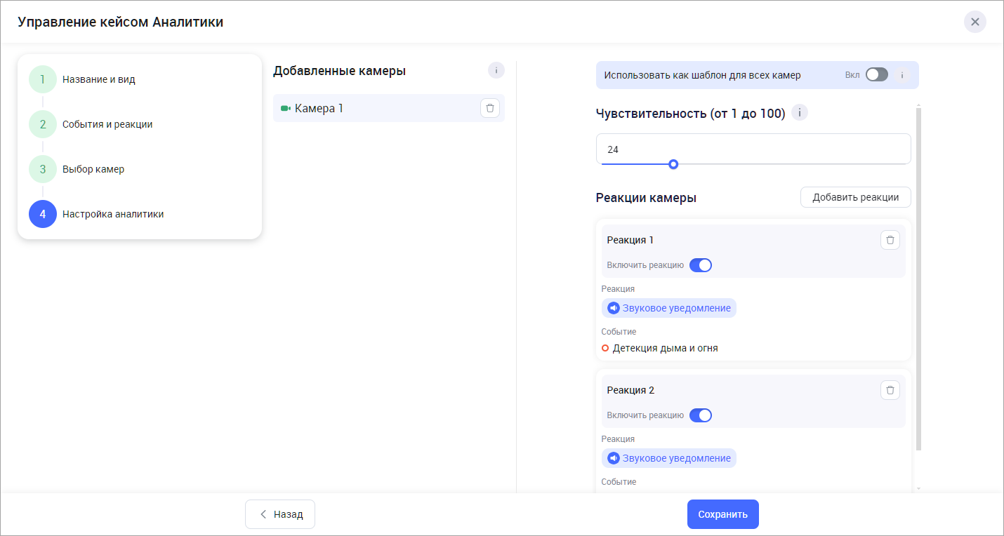 Редактирование кейса с видом аналитики «Детекция дыма и огня»