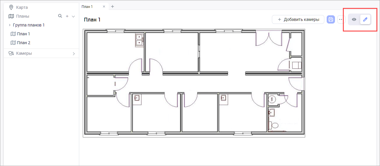 По умолчанию план открывается в режиме просмотра. Для перехода в режим редактирования нажмите на значок редактирования в правом верхнем углу.