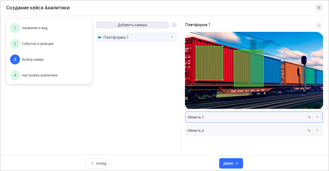 Шаг 3 «Выбор камер». Настройка областей