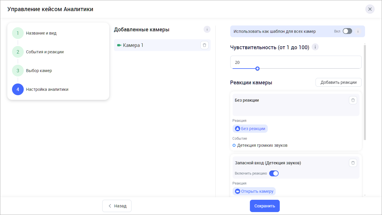 Редактирование кейса с видом аналитики «Детекция громких звуков»