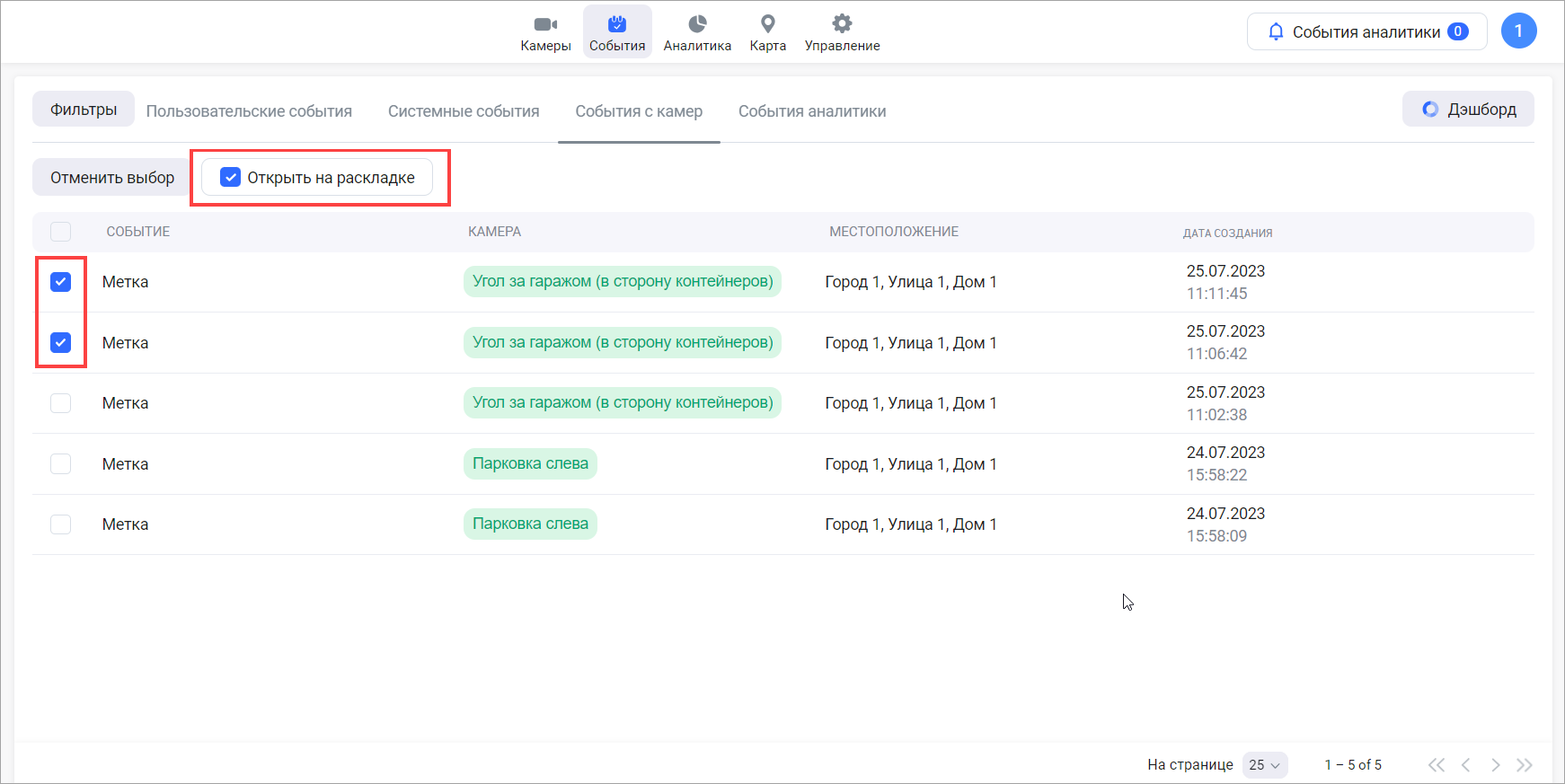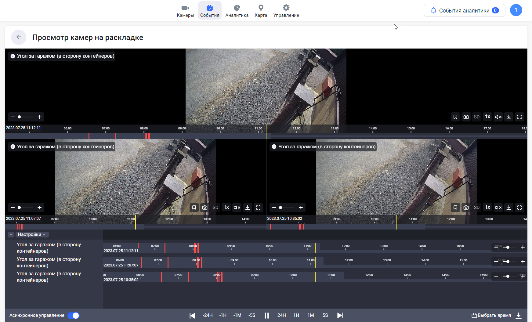 В результате выполнится переход на страницу просмотра архива соответствующих камер в момент выбранных событий.
