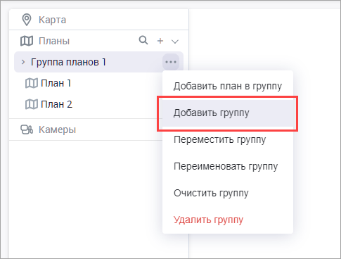 Наведите курсор на группу планов, в которую вы хотите добавить новую группу, и нажмите на (…) для вызова контекстного меню.