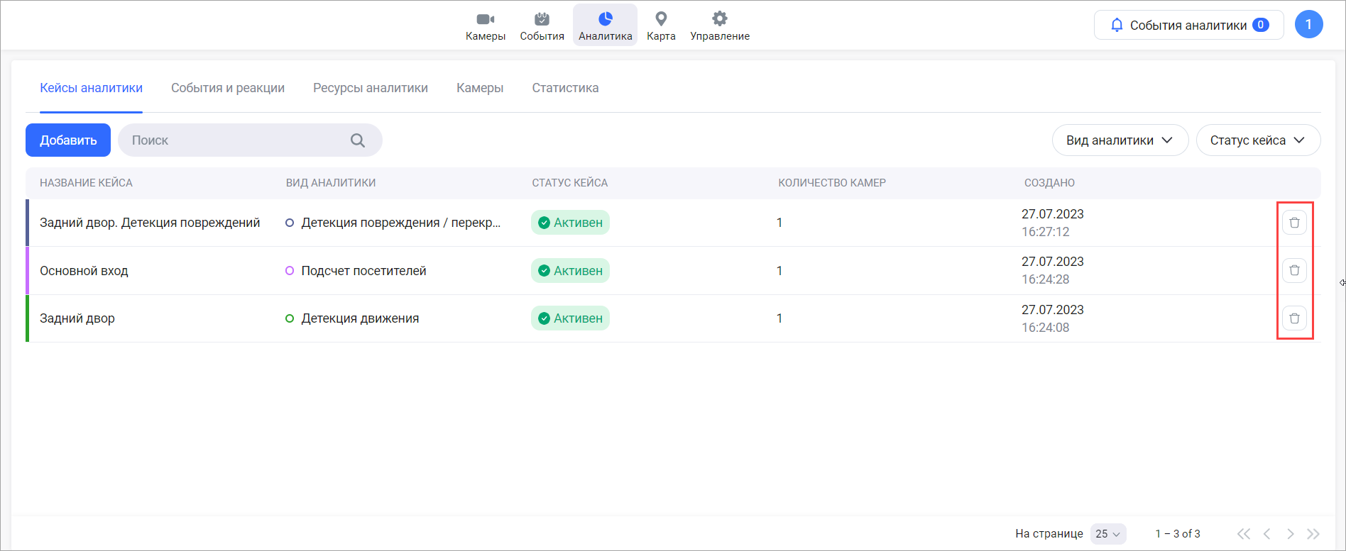 При удалении стрима камеры, которая используется в кейсе, этот кейс автоматически удаляется.