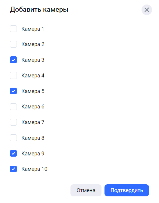В открывшемся списке выделите камеры, которые вы хотите добавить в группу