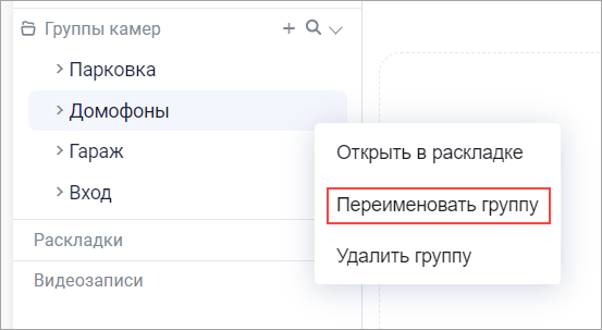 Переименование группы камер