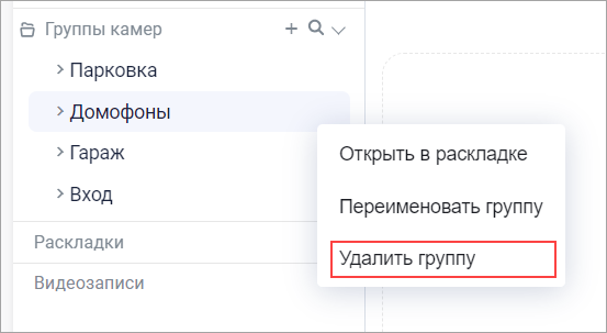 Удаление группы камер