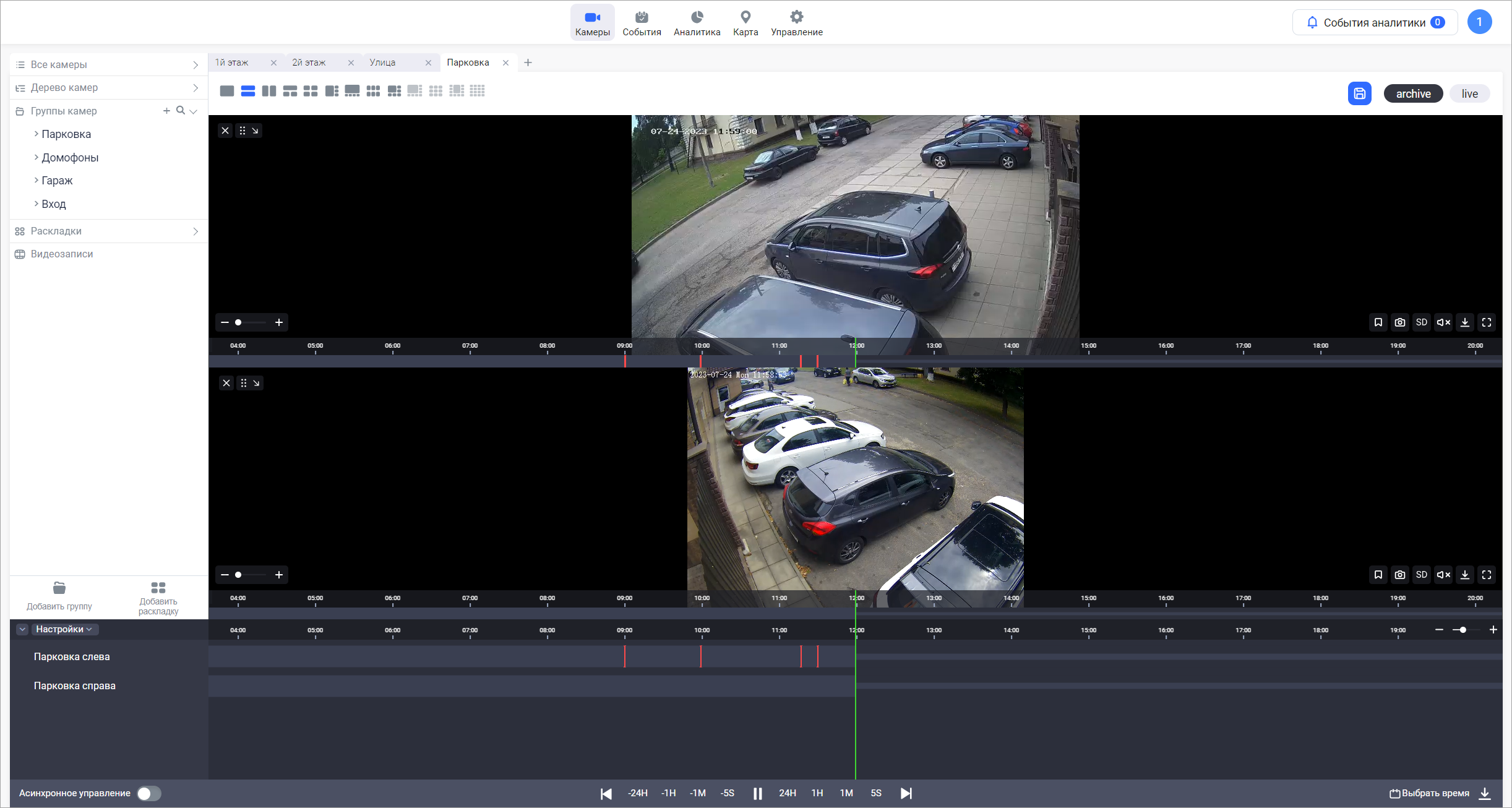 После подтверждения выполняется создание раскладки с наименованием, аналогичным наименованию группы. Просмотр трансляции осуществляется в архивном режиме с возможностью переключения в режим Live.