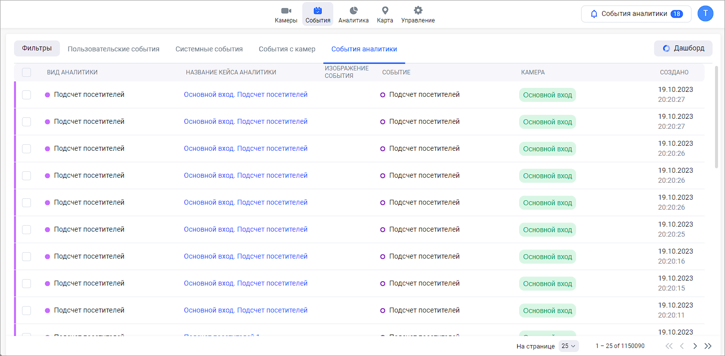 К событиям аналитики относятся события, которые произошли в рамках всех ранее добавленных кейсов аналитики.