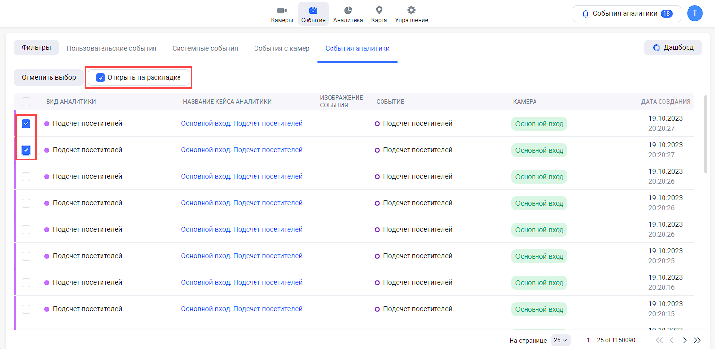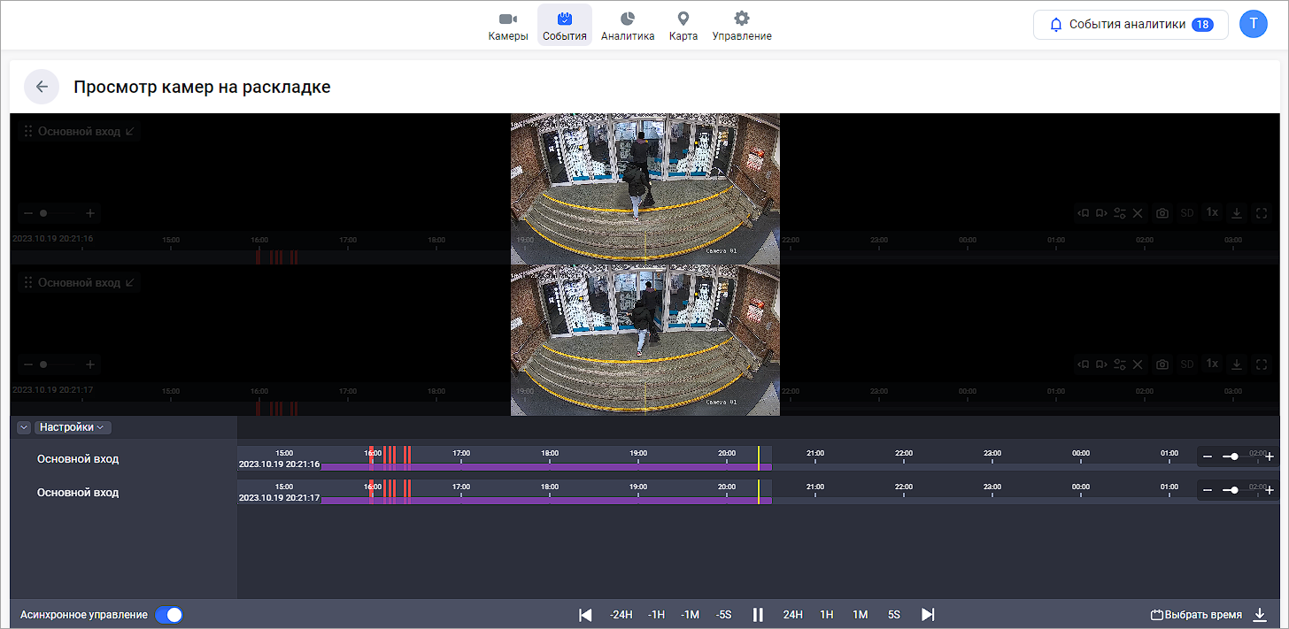 В результате выполнится переход на страницу просмотра архива соответствующих камер в момент выбранных событий.