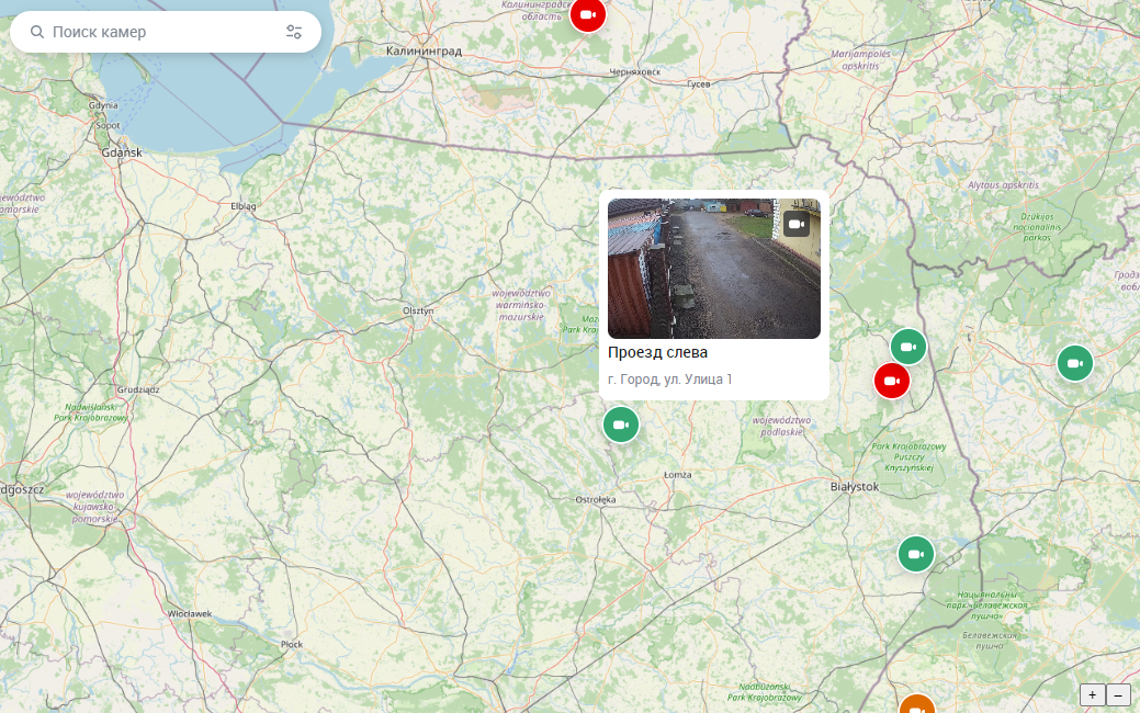 Нажмите на иконку камеры для получения информации о названии и адресе установки камеры. Также при этом отобразится изображение с камеры в текущий момент.