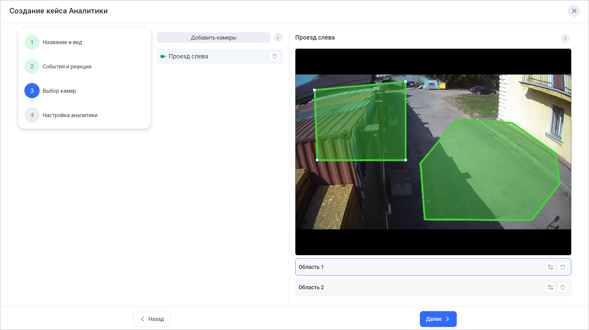Вид аналитики «Детекция вторжения в зону» предназначен для детекции движения в обозначенной зоне, настроенной в процессе добавления кейса аналитики.